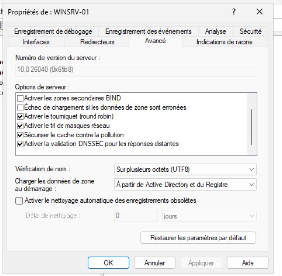 - Activer les secondaries BIND : Permet à un serveur DNS Microsoft de répliquer les données de zone avec un serveur DNS basé sur UNIX.